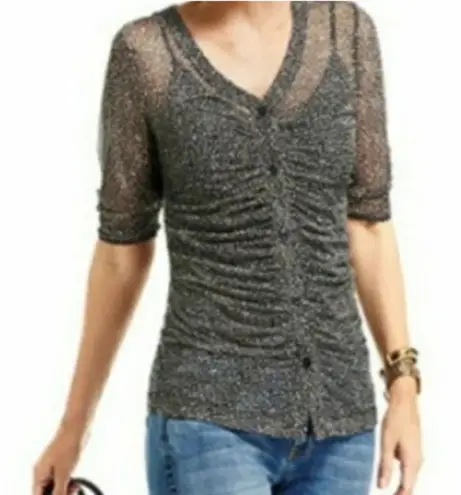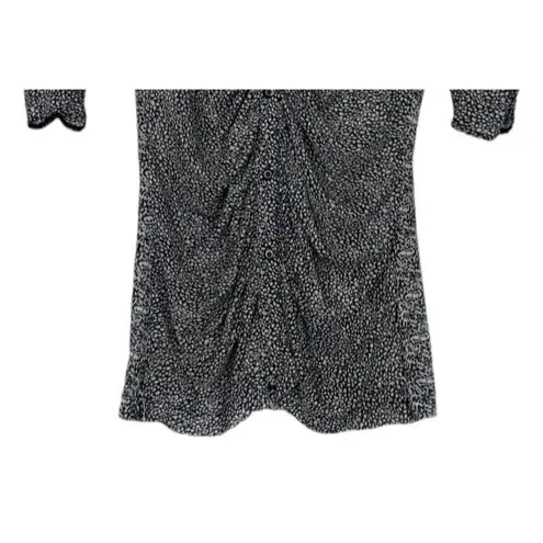 CAbi Leopard Sheer Gathered Placket Ruched V Neck Blouse Half Sleeve Button Down Stretchy M Black Wh... Show more