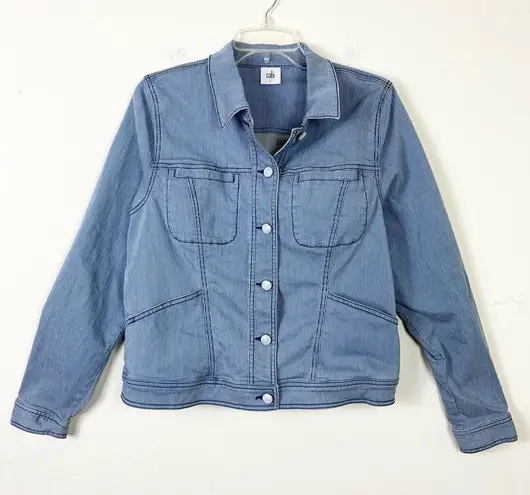 Cabi Locomotive Light Wash Pinstriped Denim Button Up Jean Jacket #5159 Size L Gently used excelle... Show more