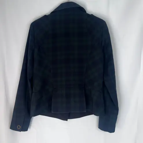 Cabi Green Tartan Plaid Full Zip Moto Jacket Size 6 Dark green tartan plaid Collar, long sleeve, zip... Show more