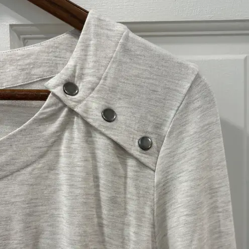 Excellent used condition cAbi snap shoulder sweatshirt in a heathered gray color. It is lightweight... Show more
