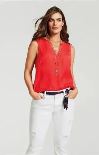 Brighten your wardrobe with this CAbi sleeveless blouse. Bold red hue. Effortless style for any occa... Show more