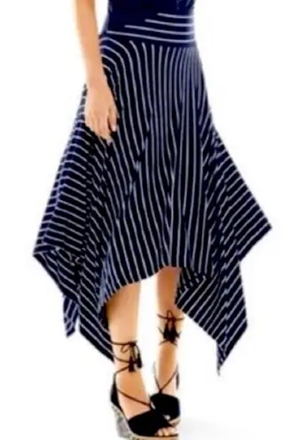 Good pre owned condition no rips or stains. Thick stretchy pull on skirt navy with white stripes. Fl... Show more