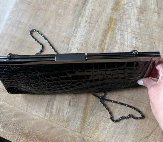 Elegant black clutch with crocodile texture. Sleek and stylish design. Perfect for evening events. A... Show more