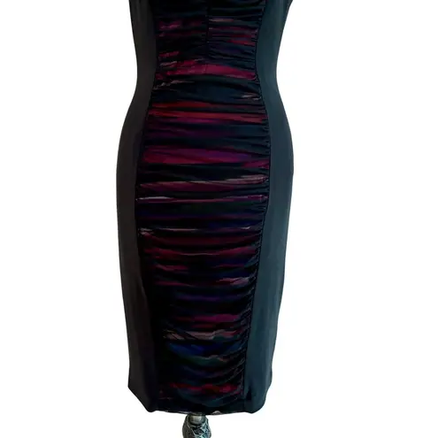 CACHE BLACK MULTI COLOR INSERT FRONT AND BACK BEHIND BLACK MESH DRESS FABULOUS, EYE CATCHING... Show more