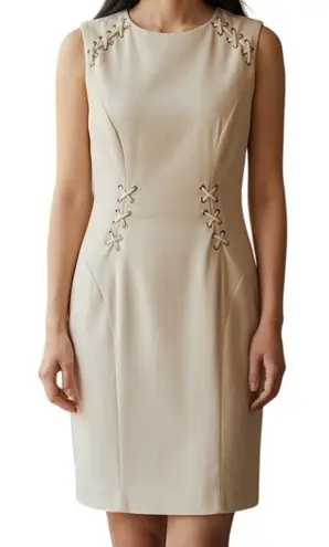 Worn Once - Like New Scoop Neck Sleeveless Opening in Back Hidden Zipper and Eye Hook Back Center T... Show more