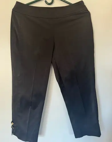 Stylish black cropped pants by Cache. Features a sleek design with gold accents at the bottom hem.... Show more