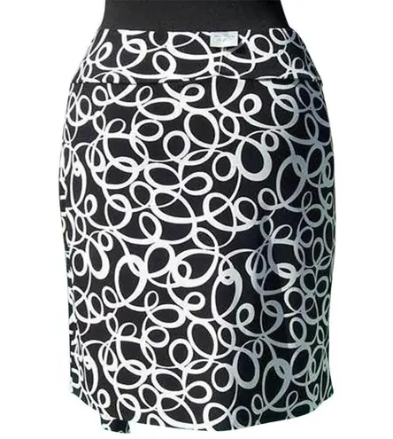 CACHE BLACK and WHITE SCRIBBLE ASYMMETRICAL HANKY HEM FAUX WRAP, SIDE PLEATS HEM EVEN IN BACK ELA... Show more