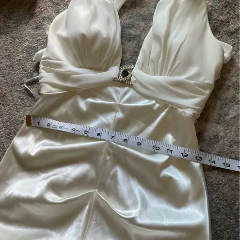 . Dazzle in this Marilyn Monroe esque white chiffon and satin gown. Features a stunning plunge neck... Show more