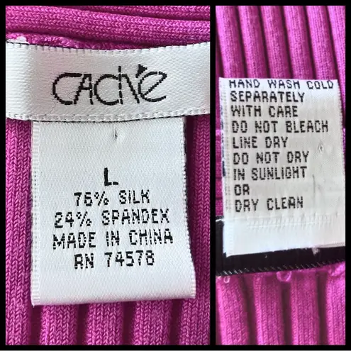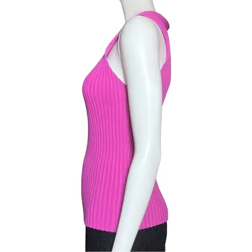 Sleeveless silk blend knit magenta bodycon going out top by Cachè from the early 00s. Ribbed stret... Show more