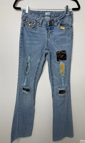 Cache Women's Vintage 90s y2k Bootcut Flare Light Wash Distressed Patchwork Mixed Media Jeans 6 Siz... Show more