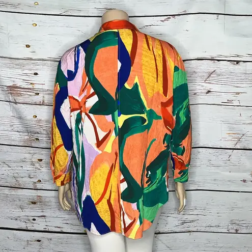 Calia Size XL Colorful Abstract Tunic Button Down Tunic Shirt. Collar. 2 Chest Pockets. High-Low Rou... Show more