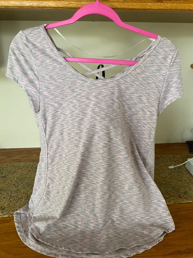 Pink and gray work out shirt. Worn maybe once or twice and in perfect condition! Super lightweight a... Show more
