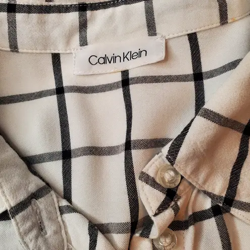 Chic Calvin Klein shirt with a black and white grid pattern. Button-down style. Perfect for versatil... Show more