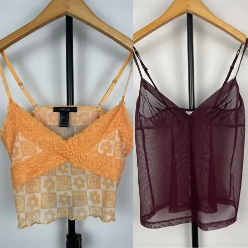 Calvin Klein Burgundy Mesh Sheer & Forever 21 Orange Floral Smiles Tank Bundle Nice used condition... Show more