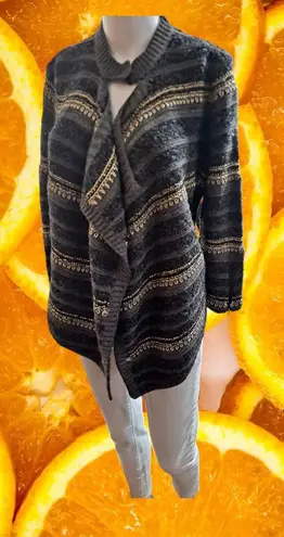 Calvin Klein Jeans Open Front With Top Snap Knit Sweater with Zip 3/4 Sleeve. There is a small pin h... Show more