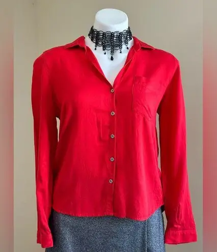 Calvin Klein Jeans Red Button Down Collar Blouse Metal Buttons 1 Pocket Sz M. Size M - $33 - From Midsie