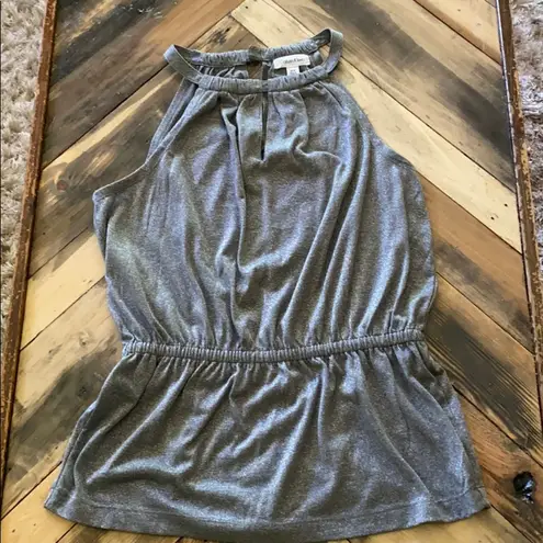Calvin Klein silver sparky keyhole shirt. Gathered waistband. Button enclosure on the back neckline.... Show more