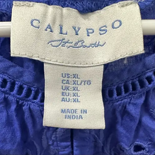 Gorgeous 100% Cotton Royal Blue Calypso St. Barth Sleeveless Eyelet Double Button Neckline Blouse Size XL. Only worn on once. Lighting may affect color appearance as shown. Fast Shipping today or next business day