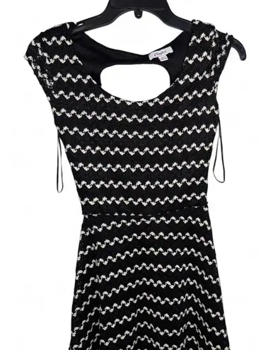 Super cute retro-style knit dress by Candie’s featuring a black and white zigzag pattern and a flattering skater silhouette. Cutout back detail adds a fun, flirty touch. Note: Original belt is missing — reflected in price. Size: XS Measurements: • Pit to pit: ~13” • Length: ~32” (approx.) Condition: Good pre-owned condition (no holes or stains, just missing belt). Style details: • Textured knit fabric • Cap sleeves • Circle cutout on back • Stretchy and comfortable Perfect for: Date night, casual outings, or layering with a denim jacket and boots. Ships same or next day! No belt attached Hashtags: #CandiesDress #RetroStyle #ZigzagPrint #SkaterDress #XSStyle