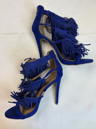 Step out in style with these ultra-high 5" fringed suede heels from Candies. With a solid blue color... Show more