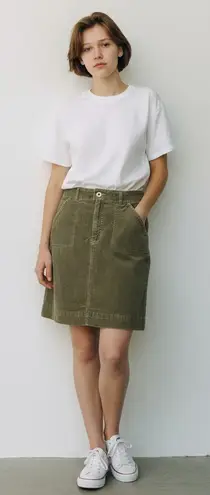 Bring on fall in this dark green, knee-length corduroy skirt from Carhartt. - Zip and logo button cl... Show more