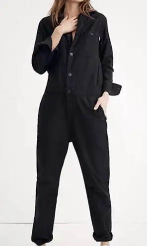 Carhartt work in progress boiler suit / jumpsuit with a button up front and collared neckline.