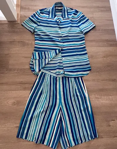 Vintage Silk 2 Piece Botton Up Shirt & short Blue White Strips size 6/8 - $98 - From MyArt