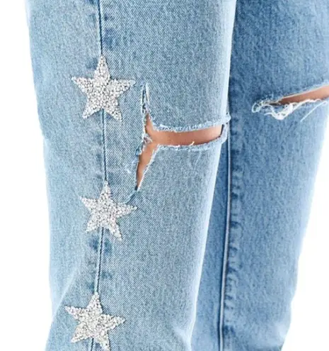 Size 25, In Perfect Condition, Some of the star patches are a little loose. The Alexander is a slim fit jean by CARMAR Denim. This jean will feel snug and form fitting at first, but relaxes with wear to form to your body. Features the Ezra light wash, slashing at thighs and rhinestone star embellishments.