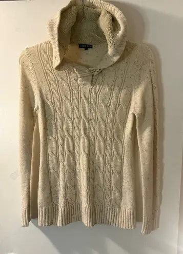 Super soft, cozy, and perfect for cooler weather! This beautiful cream-colored hooded sweater features a classic cable knit design with a warm sherpa-lined hood for extra comfort. Easy to dress up or down—great with jeans, leggings, or layered over a tee. ✨ Details: • Brand: Carol Rose • Size: Large • Color: Cream / Ivory • Material: 100% Acrylic • Style: Hooded cable knit pullover • Made in Bangladesh ✨ Condition: Excellent pre-owned condition. No flaws or stains. Clean, soft, and well cared for.