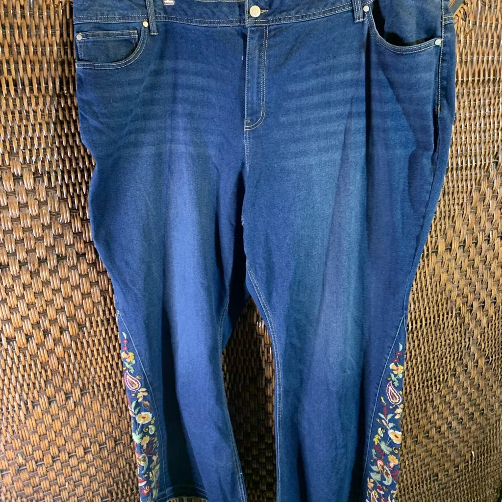 Cato Embroidered Flare Stretchy Jeans Size 28W Red - $35 - From Heather