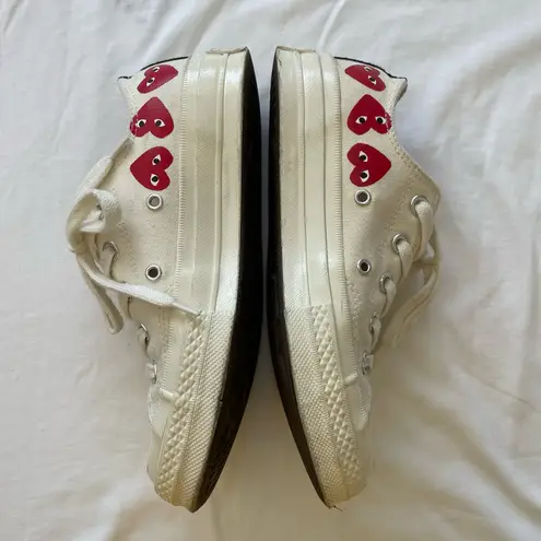•White and red Comme des Garçons Converse sneakers •In great condition only wore handful bc it’s too... Show more