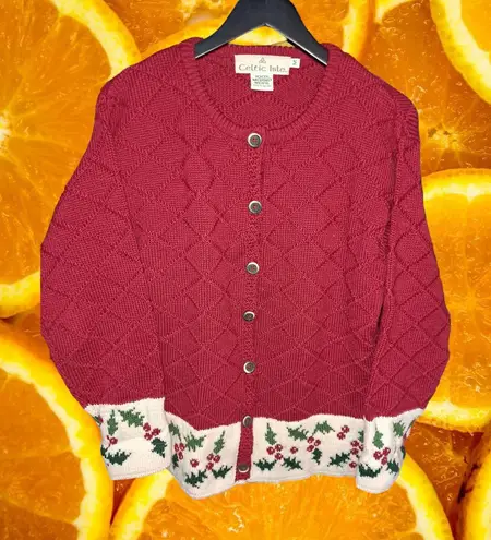 Celtic Isle Red with‎ Holly Button Up Cardigan 100% Merino Wool Size Medium - $75 - From Thrifty