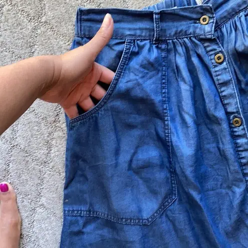 Chambray button down skirt pockets pleated front bohemian festival casual Blue - $32 - From Krystal