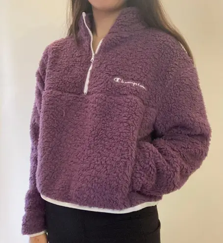 Fuzzy sherpa half zip cropped pullover sweatshirt by Champion NWT This fuzzy sherpa cropped pullove... Show more