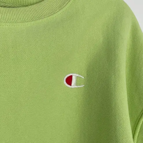 cropped, sweatshirt, crewneck, Champion logo, vintage, 1993, long sleeve, green, hemmed, casual, Women's, retro, sporty, large, statement piece, classic, comfortable, streetwear, trendy, layering, cotton blend, professionally altered, unique, athletic, oversized, throwback, collector, logo, 90s style