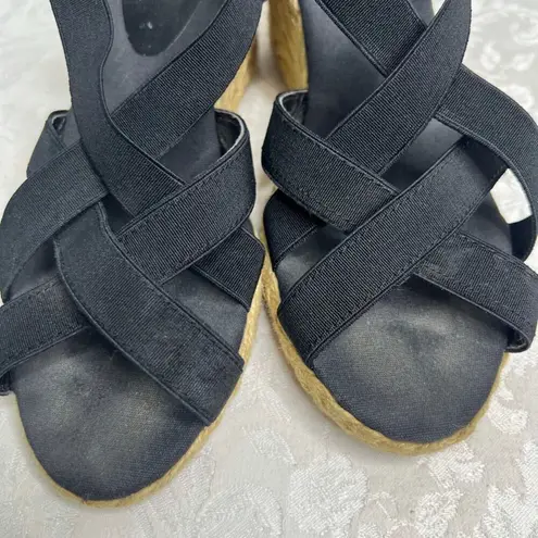 Chaps Black Strappy Open Toe Slingback Wedge Espadrille Heels Size 9-9.5 **NO size tag on these but... Show more