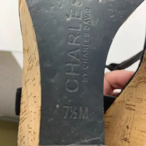 Charles by Charles David 4" Cork Wedge Black Sandal Tan Size 7.5 - $13 - From M