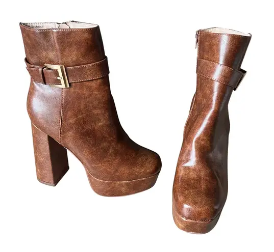 Chase &‎ Chloe Chunky Platform Boots Women's 7 Brown Buckle Going Out - $38 - From Thrifted