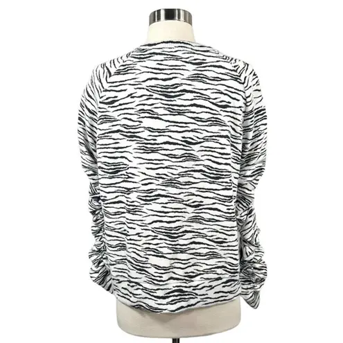 Chaser Bliss Knit Shirred Long Sleeve Raglan Pullover in Zebra. 49% poly, 46% rayon, 5% spandex. Ruc... Show more