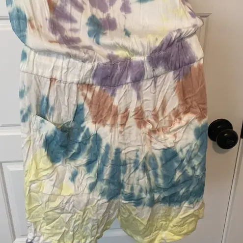 Chaser HEIRLOOM WOVENS SHORT SLEEVE BUTTON DOWN ROMPER IN TIE DYE small NWOT Yellow - $37 New With Tags - From Tracy
