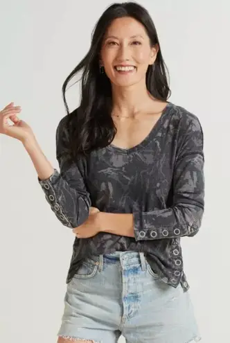 Chaser Shirt Womens X Small Gray Camo Vintage Rib V Neck Top Snap Detail Size X Small Preowned-Good... Show more