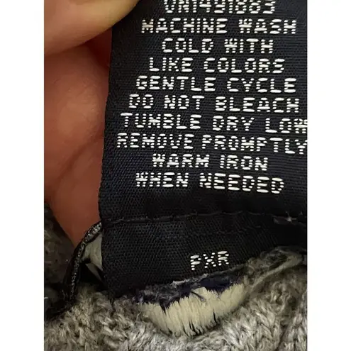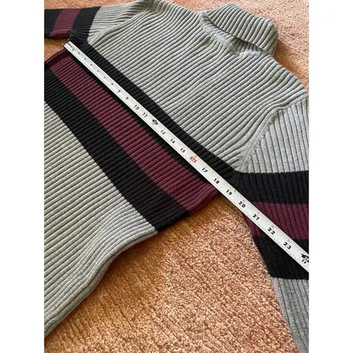 Vintage Cherokee ribbed knit turtleneck sweater in gray with bold black and purple horizontal stripe... Show more