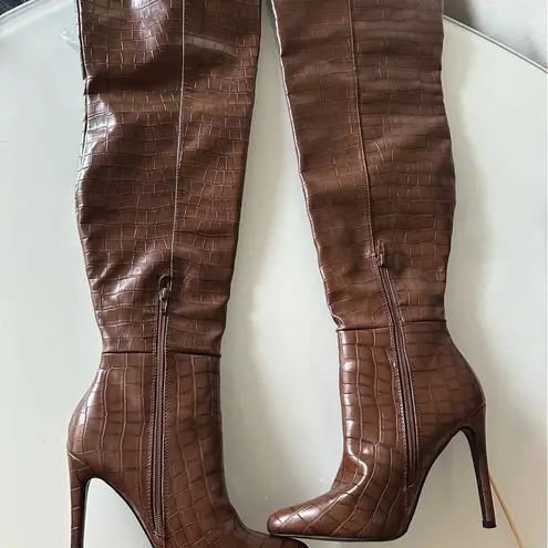 Chic Brown Croc-Embossed Heeled Boots Size 7.5 - $30 New With Tags - From Gema