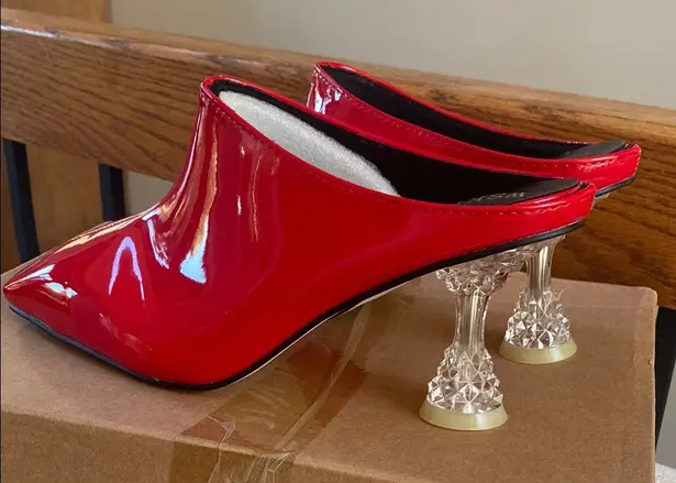 Chic Red Patent Leather Mules size EU 37 kitten heel pointed toe holiday - $16 New With Tags - From GypsyRiver