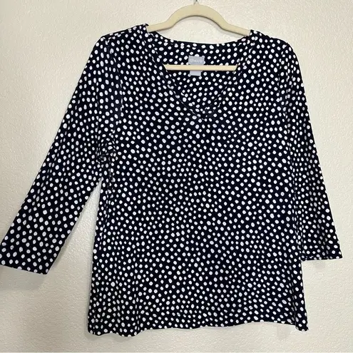 Size: Medium Color: Navy Blue with White Polka Dot print - Pull Over Style - V-neck - 3/4 Sleeves -... Show more