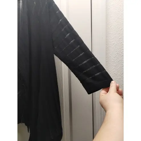 Chico's Additions Women's Size Small (0) Black All-Over Eyelet Fringe Detail Open Front Cardigan Swe... Show more