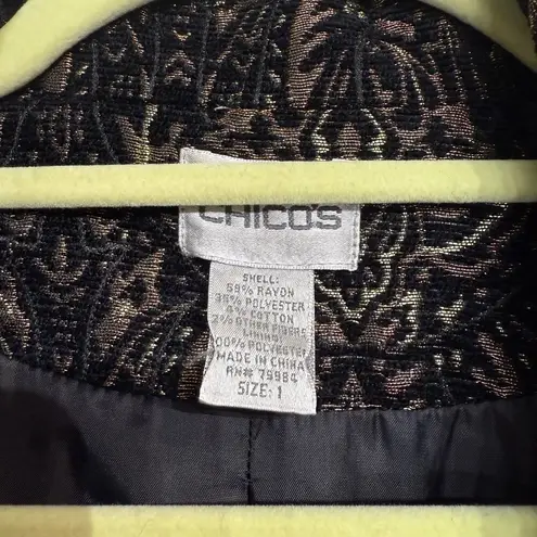 Medium black and gold jacket by Chico's in excellent preowned condition. Approximately 28” length... Show more