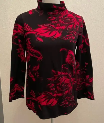 Beautiful Black Mock Turtleneck Sweater with Bold Red floral Print in Excellent Pre Owned Condition.... Show more