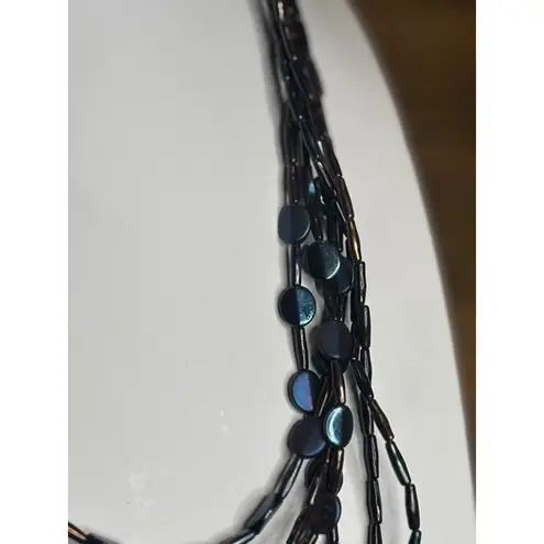 Elegant multi-strand necklace featuring black and bronze beads. Designed with an adjustable clasp fo... Show more