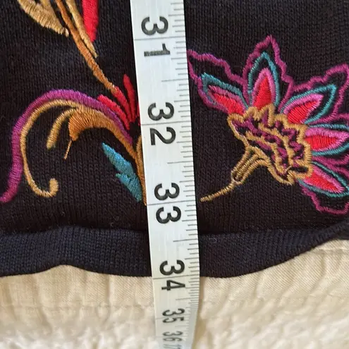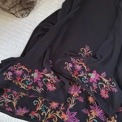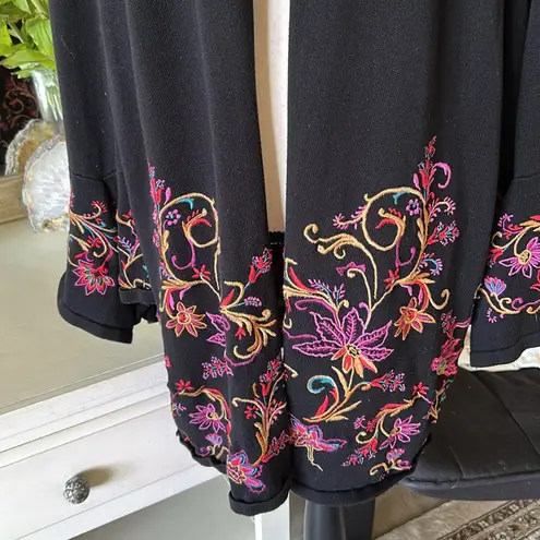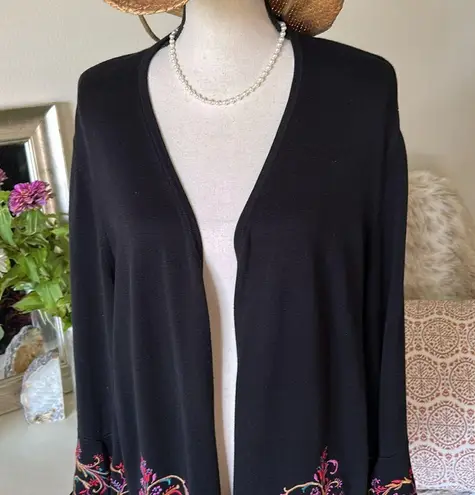 Beautiful Chicos black open front long line boho European colorful floral embroidered cotton blend s... Show more